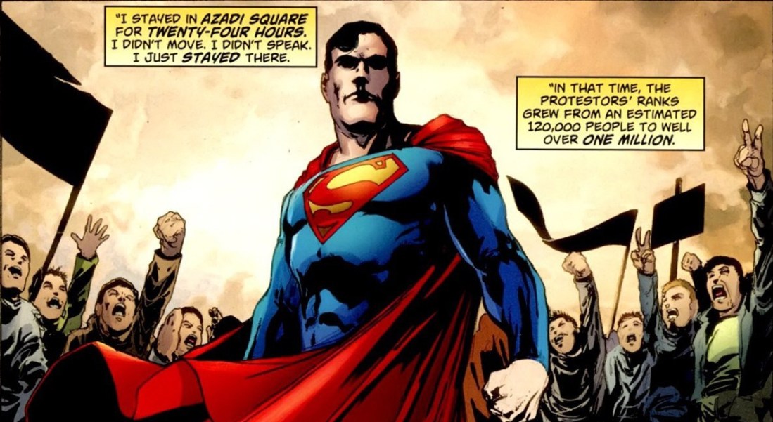 America in this story is very much like it’s real life counterpart. There is turmoil in the Middle East and America is at the center of it. There are protests from the people of these ravaged lands, calls for hope and calls for freedom. In many Middle Eastern countries, innocent people faced an incredible hardship. Where does Superman play into this dynamic?